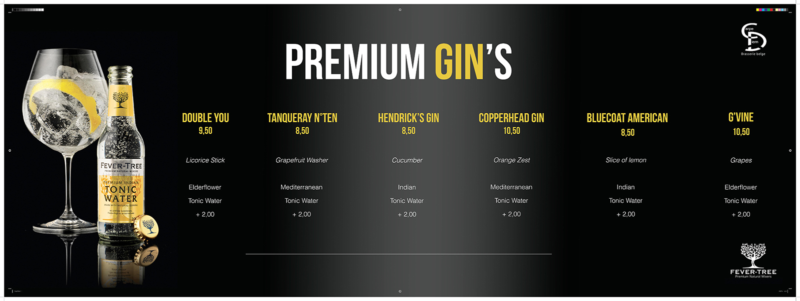 e Carpe Diem possède une carte de gin’s étoffée pour vous satisfaire.